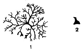 Рис. 51. Хроматофор десятиногого рака (Palaemonetes): 1 — пигмент диспергирован; 2 — пигмент сконцентрирован