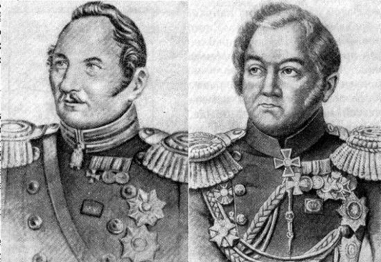 Слева: Ф.Ф. Беллинсгаузен; справа: М.П. Лазарев