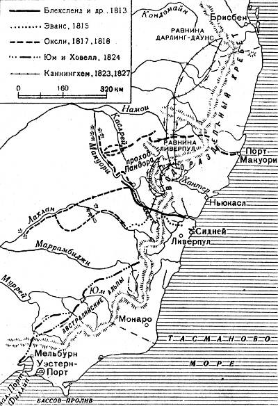 Быстрый темп колонизации способствовал и интенсивным поискам новых земель внутри страны. Эти поиски велись и властями новых колоний, и сквоттерами, и всевозможными искателями приключений. Но в эту эпоху, в 20-х и 30-х годах XIX в., в анналах австралийских открытий появляются и новые имена путешественников-профессионалов.