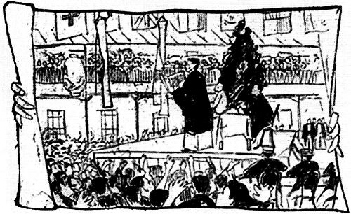 Собрание в Осаке против заключения мирного договора (газета «Осака — Асахи», 4 сентября 1905 г.)