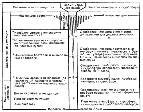 Таблица 2. Основные события истории живого вещества и развития атмосферы и гидросферы.