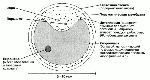 Рис. 2.30. Строение зеленой водоросли хлореллы.