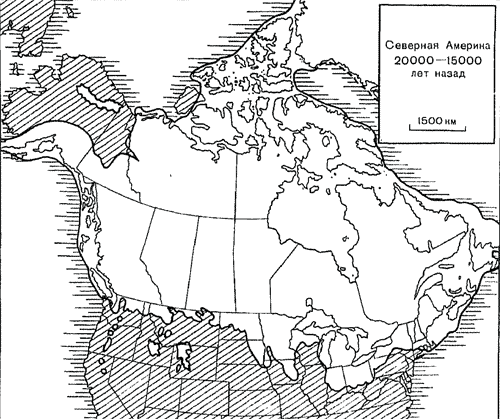 Рис. 63. Схема таяния ледников Северной Америки в конце последней ледниковой эпохи (главным образом по данным Геологической службы Канады). А. Северная Америка 20 000-15 000 лет назад.