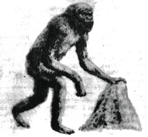 Фото 63. Реконструкция рамапитека, опирающегося одной рукой на термитник. Это животное могло успешно добывать термитов в лесах подобно современным шимпанзе.