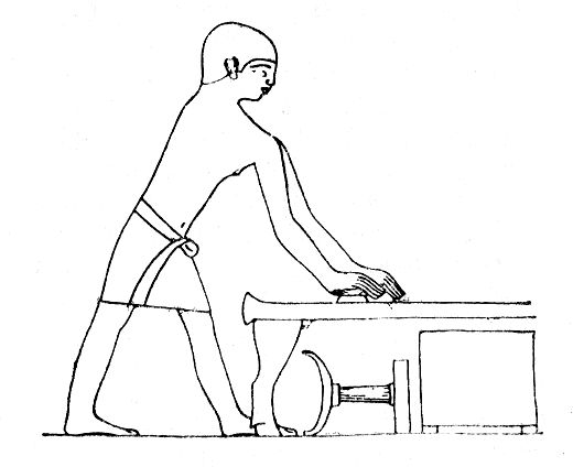 До нас дошли от середины III тысячелетия изображения процесса гнутья деревянного бруса. Приспособление для гнутья обслуживалось двумя мастерами. К сожалению, мы не знаем, подвергали ли дерево, предназначенное для гнутья, воздействию горячих паров, как это делается в современном деревообделочном производстве, или у древних египтян существовал другой метод обработки. Исходя из описания процесса гнутья дерева, мы можем сказать, что согнуть деревянный брус было делом несложным. Значительно труднее было обработать камень, которому хотели придать форму дуги или вырезать в нем дугообразный рельеф.