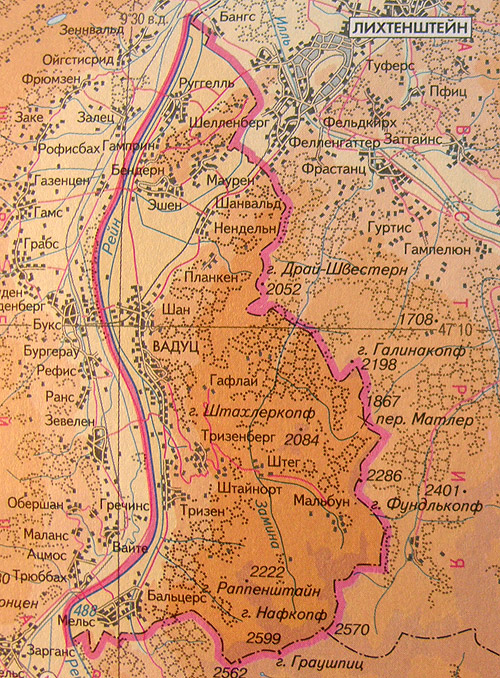 • Наивысшая точка: гора Нафкопф, 2570 м