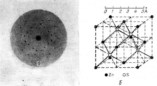 На рис. 5, б эта рентгенограмма расшифрована, т. е. показано действительное распределение ионов Zn и S в пространстве.