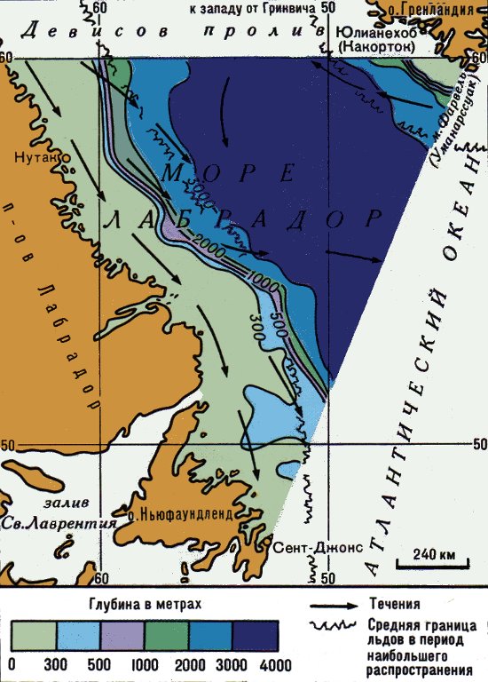 Море Лабрадор относится к числу ледовитых. Льды встречаются в нем на протяжении большей части года, занимая до 2/3 его площади. Остальное пространство бывает всегда свободно ото льдов.