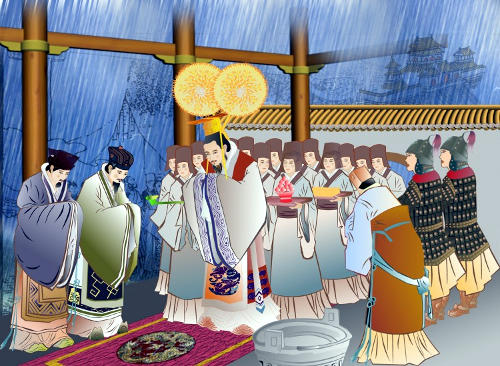 Но если верить китайским историческим хроникам, то в государстве Шан-Инь жизнь была построена на принципах справедливости. Государь — ван — предоставил городам и сельским общинам широкое самоуправление с условием лояльности и приношения даров. Общество, ведущее по свидетельству археологии, такое количество войн, не могло быть построено таким образом. Без давления сверху крестьяне и ремесленники не вступали бы в армию и не платили бы налоги на ее содержание. Основную силу шанского войска все еще составляла масса общинного населения. Это доказывается тем, что в могилах рядовых шанцев-мужчин обязательный набор погребальных предметов включал оружие.