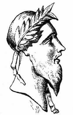 Ромул (Romulus), в римской мифологии основатель и эпоним Рима. Датой основания легенды называют 21 апреля 753 г. до н.э. Город Ромула включал в себя только два холма: Палатин, где жили исконные римляне, и Капитолий, где поселились сабины. Ему приписывают создание основных институтов Рима — сената, всадничества, деления народа на патрициев и плебеев, патроната первых над вторыми, легионов и прочее. В легенде о братьях-близнецах Ромуле и Реме много вымышлено. Например, сюжет об исчезновении Ромула на 38-м году своего царствования. Народ думал, что его убили сенаторы, но Ромул явился некоему Юлию Прокулу и велел передать народу, что он вернулся на небо к своему отцу и стал теперь богом Квирином, покровителем Рима. В память о нем на границе двух площадей Форум и Комиций был установлен «Черный камень». Камень обнаружен в 1899 г.